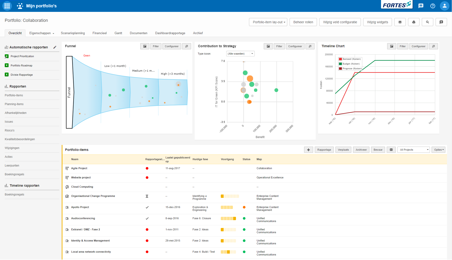 Optimaliseer portfolio’s, rekening houdend met nieuwe ideeën en veranderingen in belangen, risico’s en randvoorwaarden. Automatiseer de rapportagecyclus en